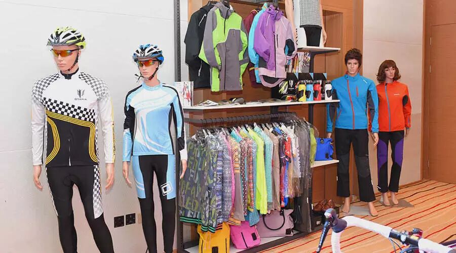 欧亚马的人身周边非常齐全,在产品T台秀环节也充分展示了其时尚的骑行元素。