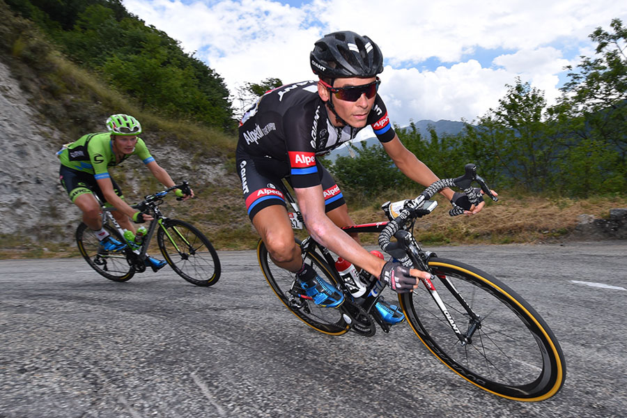 主集团终于进入La Toussuire战场,然而还是在优哉游哉轧马路,节奏慢得令人发指,连皮诺(Thibaut Pinot)这种八线GC都可以在里边儿混口饭吃。前边儿尼巴利甩开罗兰自己走,我们可以提前剧透一下他拿到了这个单站——然而并没有什么○用。