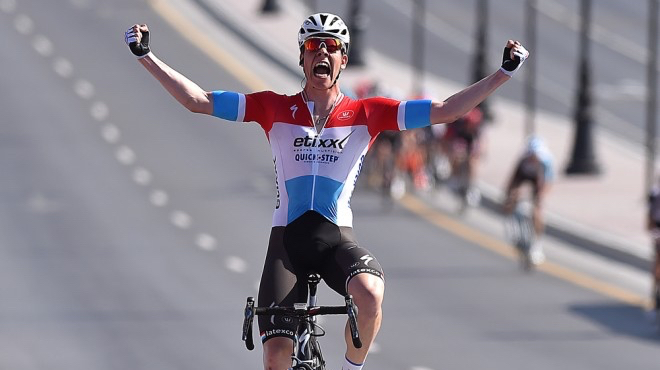 赛后,这位年轻的卢森堡小将穿上了红色的领骑衫。他表示,“为了今天最后一段的突围,我已经足足准备了两天。所以现在我特别高兴。这次来比赛我的目标就是拿下一个单站,现在我已经做到了。明天我会竭尽全力捍卫这个荣誉,而且我还有队友丹•马丁并肩作战。”
