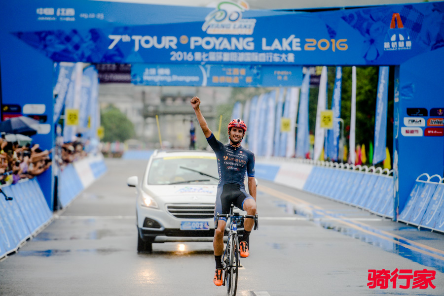 2016年9月16日,第七届环鄱阳湖国际自行车大赛第五站赛事移师江西上饶横峰,台风的影响还未过去,因此全天的比赛都在雨中进行。同时今天比赛的后半程连续的两个高难度爬坡,将整个集团打散,并对最终的总成绩造成了重要影响。最后三十多公里,车手们需要连续征服一个1级爬坡和一个HC级爬坡,最大坡度达到了15%以上。