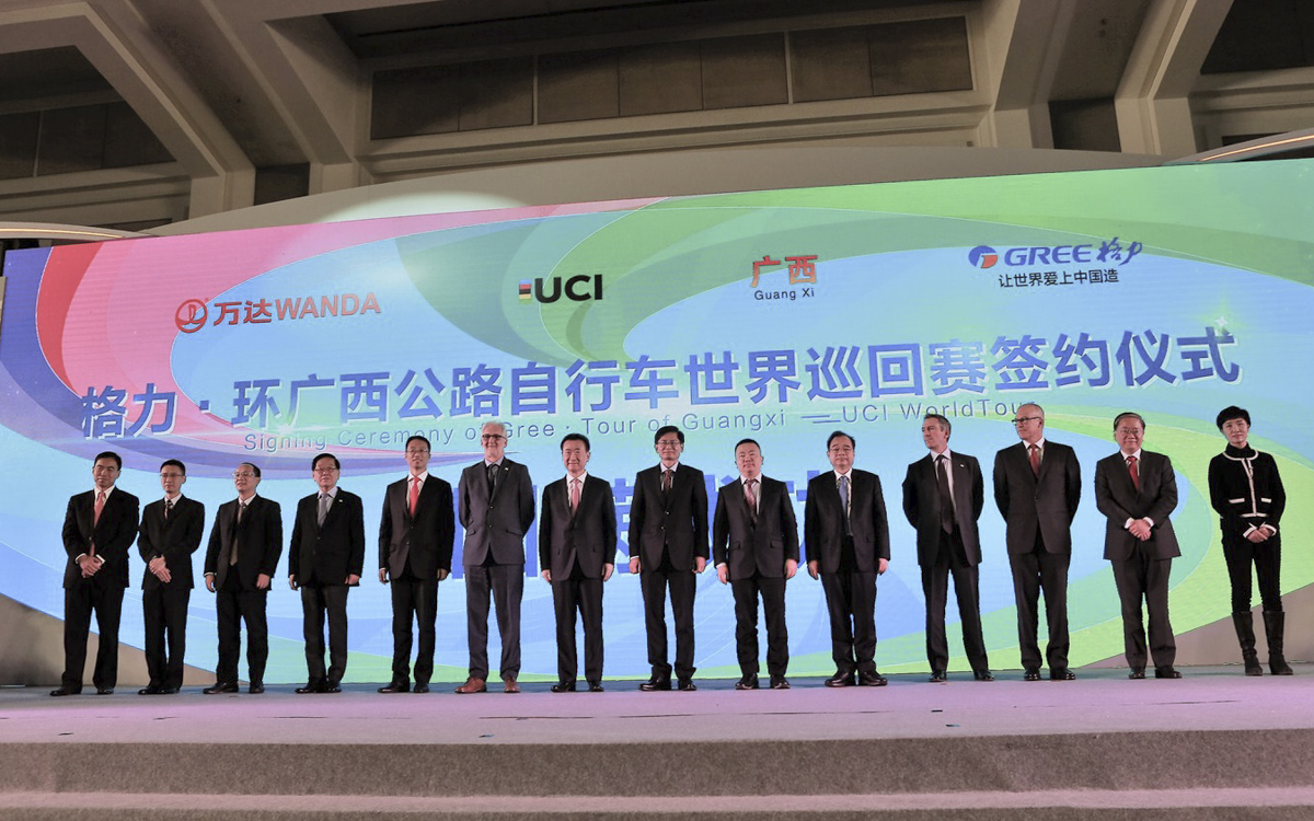 2016年12月1日,环广西公路自行车世界巡回赛签约仪式在北京举行。国际自行车联合会(UCI,简称国际自联)、广西壮族自治区人民政府与万达集团出席了此次签订仪式。