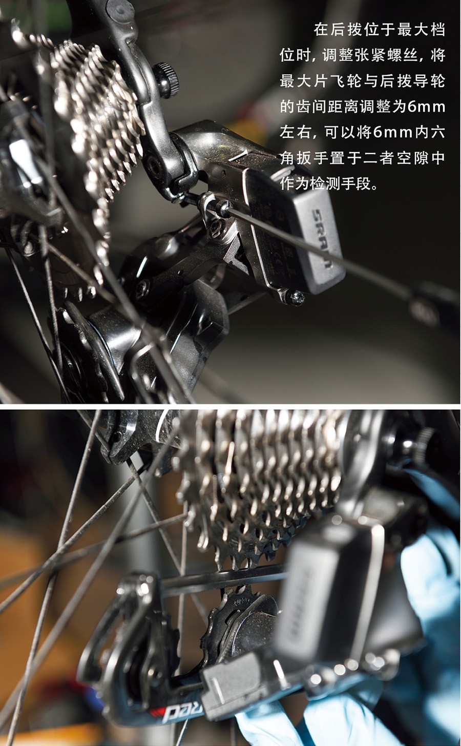 尝试全部22个档位变速,在有噪音和后拨多余跳动的档位进行微调。