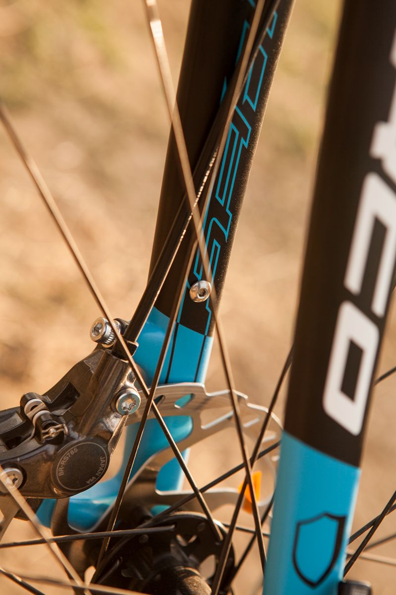 拖曳距与弯曲度都很大的碟刹前叉,也加强了缓震效果。在公路碟刹新规格的条件下Search全系列使用前15mm桶轴设计,强度已经高于普通山地车,加上平稳却依然霸气的加宽外胎,可见这家伙真的不是只能在平路面上骑行的主儿。