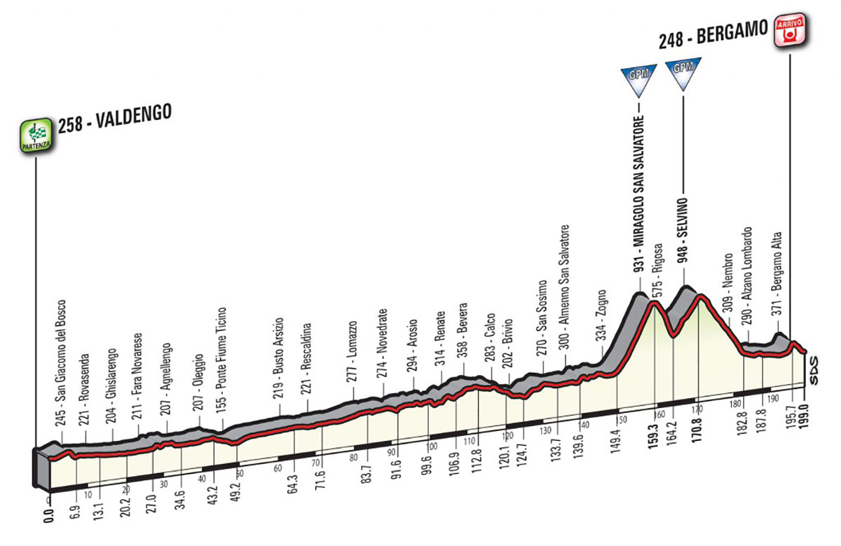 最后一个赛段是个人计时赛赛段,全长28公里,路面基本平坦,只含有轻微的下坡,终点意大利米兰的主教堂广场(Piazza Duomo),也是环意的发源地。