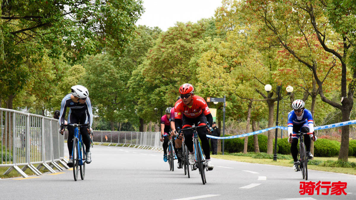 此次比赛形式多以绕圈赛为主,单圈2公里,最先进行的是EZBIKE 荣誉骑行活动,故气氛相对轻松。随之进行的是男子公路团队组的竞赛,每队参赛人数为5人,团队总成绩取车队前三名车手的成绩总和。各车队间隔1分钟依次发车,故提前发车的团队便先开始了一场和自己的较量,而后续发车且实力较强的队伍则全力赶超。总里程为10公里的比赛,体力分配和团队战术同样重要,最终上海极速-拓辉车队获得了冠军,Team BASAARMAN和恋骑G7-GIANT单车俱乐部分获二、三。