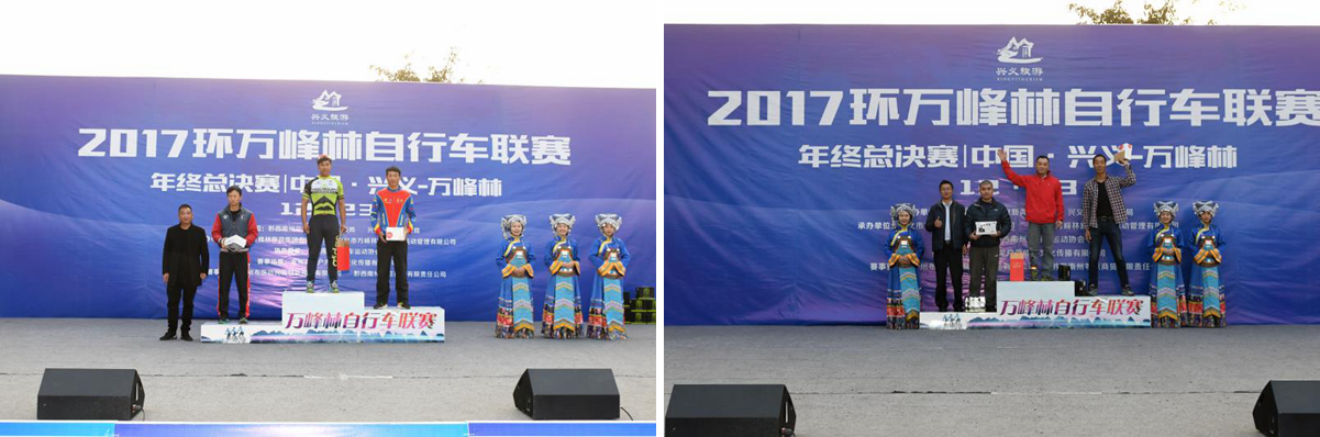 2017年12月23日上午,2017环万峰林自行车联赛年终总决赛在兴义市万峰林景区举办,本次赛事由兴义市万峰林旅游集团主办,兴义市万峰林黔龙户外运动管理有限公司承办,黔西南州自行车运动协会提供协办,中国人寿保险股份有限公司、贵州布医坊民族特色用品有限公司、万峰林金峰圆休闲度假山庄、黔西南州零点商贸有限责任公司、万峰林易安庭客栈、7天连锁酒店、西南骨科医院、飞龙雨、盛世苗家、凯丽国际·教育培训赞助。邀请出席的领导嘉宾有兴义市万峰林旅游集团公司副总经理刘文发、兴义市万峰林旅游集团公司副总经理魏彬、黔西南州自行车运动协会会长孙涛。