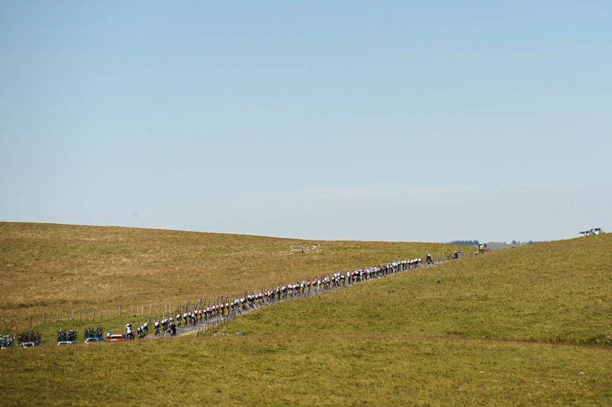 当托尼·马丁单枪匹马开始爬第三个坡Col de Peyra Taillade的时候,身后的追击集团距离他1分30秒,而主集团落在了9分30秒之后。AG2R也在前一个下坡时加速,迅速将主集团拉断龙,天空车队的弗鲁姆被落在了后面,就在AG2R飞速前进的时候,弗鲁姆出现了机械问题,队友塞尔吉奥·埃纳奥(Sergio Henao)和瓦西里·基里延卡(Vasil Kiryienka)努力将他带回集团,但是这两位副将相继在爬Col de Peyra Taillade这个坡的时候掉队,幸好有兰达在前方等待,有惊无险地将弗鲁姆带回了阿斯塔纳车手法比奥·阿鲁(Fabio Aru)与AG2R车手罗曼·巴代(Romain Bardet)所在的主集团。