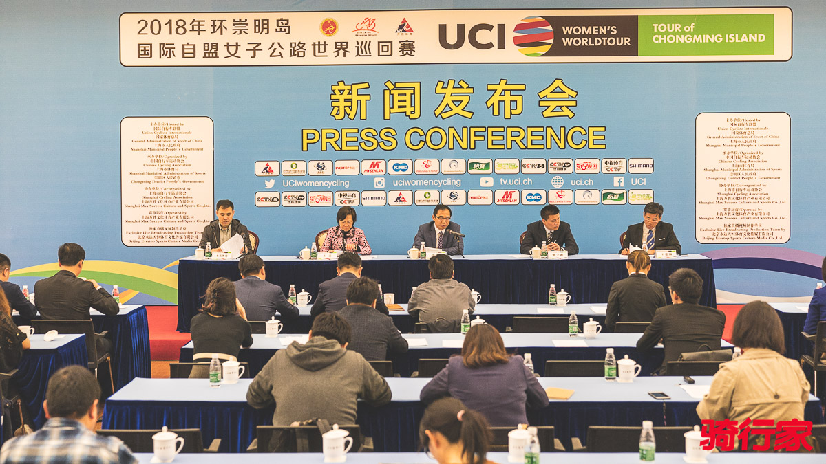 4月11日下午,2018年环崇明岛国际自盟女子公路世界巡回赛新闻发布会在上海东方体育中心举行。