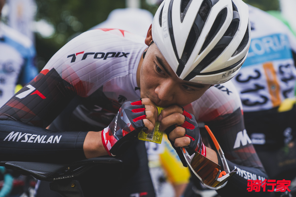 U25组的实力车手夏威被摔车波及退出赛段的争夺,放松骑行。