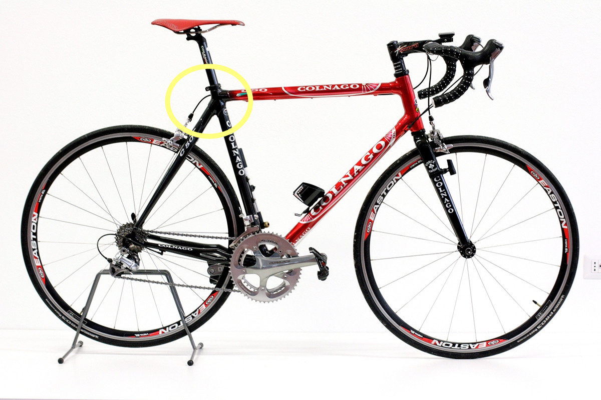 第二代C50 mk2,为了提升车架的刚性重量比,这次Colnago打起了Lug管的主意。C50 MK1与MK2最大的区别是三块Lug套管重量不同,MK2的套管经过了修饰,同时后上叉与后下叉做的看似更纤细了一点。Colnago机智的压榨了C50的车架重量。从图中可以看出明显两款C50的套管有细微区别。