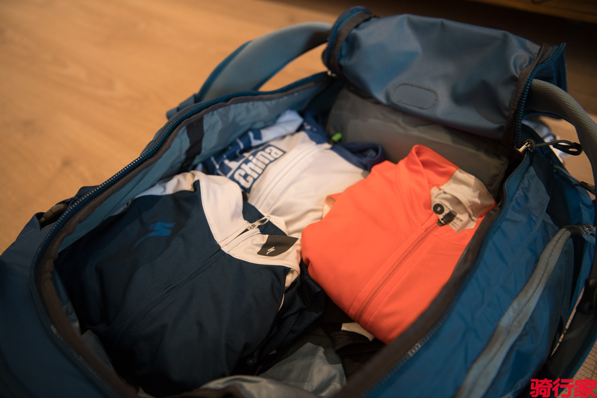 40升的Trailkit到底够用吗?我拿到这个包已经差不多半年的时间了,在这半年里,从夏季到了冬季,而里面装放的衣物也经过了季节的更替。9月份的时候曾连着跑了三个活动,Specialized新品发布会、亚洲展,然后就是Argon 18的千岛湖贴地飞行骑行活动,既有山地骑行,又有公路骑行,而且还需要带两个头盔,我原本担心Trailkit的储物空间,结果两套山地骑行服、一双山地锁鞋,三套公路骑行服、一双公路锁鞋,再加上些许的换洗衣物、手套和电脑,居然全都被我塞到了这个40升的背包里。夏季的衣物比较轻薄,所以背包里还是可以放置很多东西的。冬天的话,背包里放置三天的骑行衣物没有问题,主要还是夹克比较占空间,三条骑行长裤加上两件骑行夹克就差不多占满了背包的空间。
