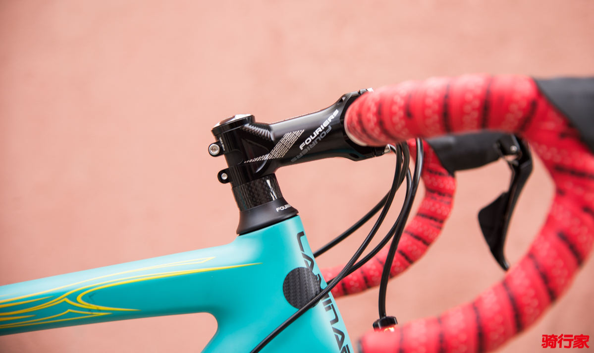 ATUR是LAMINAR旗下的综合型公路大组车型,身材“压缩”的它更擅长在山中与起伏路上发挥优势。ATUR车架主要采用东丽T800碳布制作,车架+前叉的重量仅有1350g。涂装既有蓝绿黑黄结合的时尚款,也有低调的灰底黑标版本等,满足不同人群的审美需求。在本次拍摄的样品车上,富律业充分的为我们展示了他们对一台公路车个性的定义,也完美的为我们呈现了LAMINAR ATUR多样化的可能性,并且很好的为我们展现了富律业与其代理品牌间形成的“生态链”。