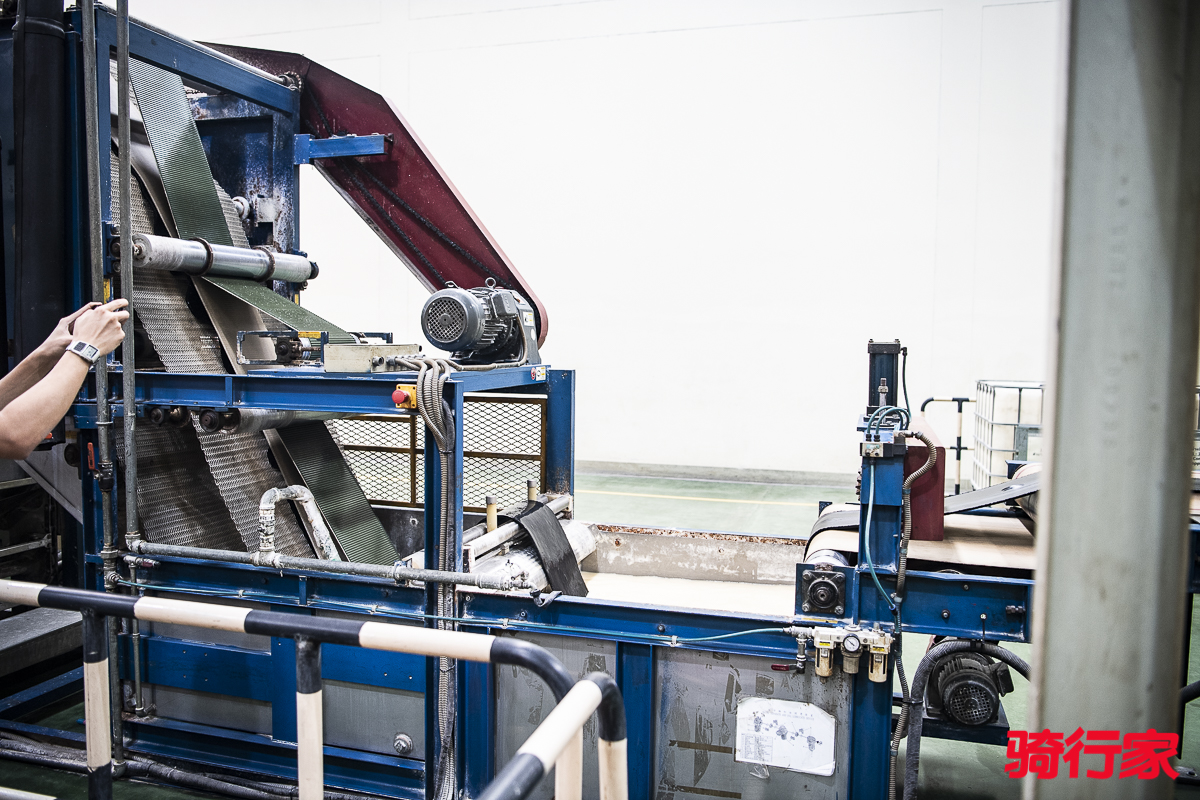 在Vittoria泰国另外一座工厂内,一条全自动化的4C生产线占据了整个厂房。4种胶料位于不同的位置,经机器慢慢汇入到同一个通道,而放置的顺序也是根据胶料最终压延或挤出的位置而定。