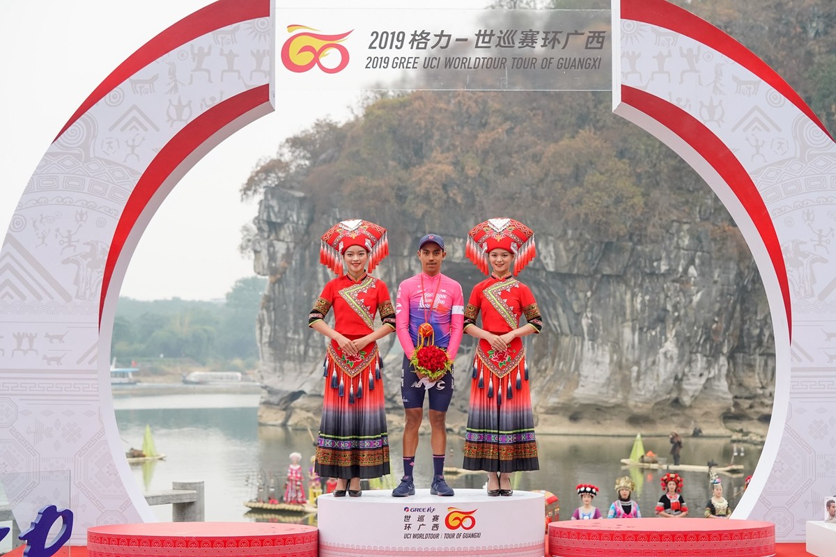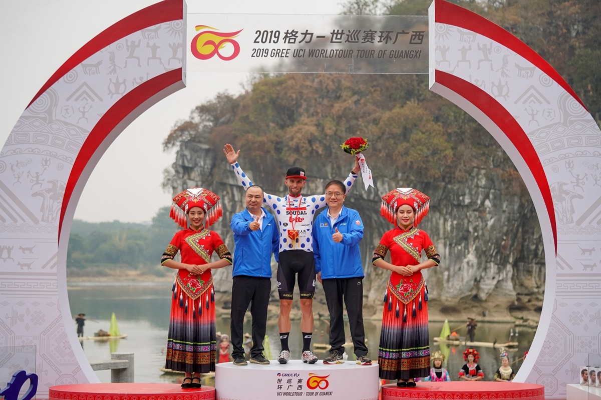 至此,2019格力-环广西公路自行车世巡赛圆满落下帷幕。在总成绩榜上,快步车队的恩里克.马斯赢得总冠军和新人王白衫,比利时乐透车队的托马兹·马钦斯基拿下最终的爬坡王,冲刺王蓝衫则属于博拉车队的帕斯卡.阿克曼。