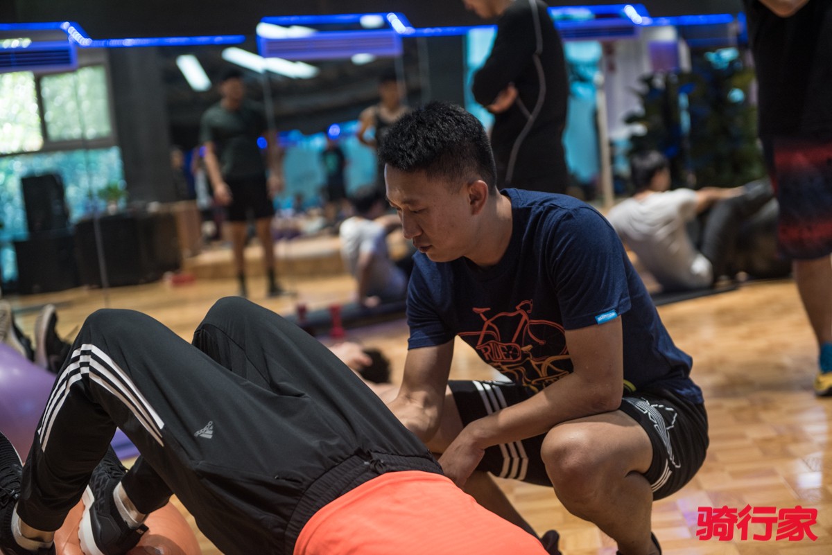 你可以在健身房私教课中学习到很多快速塑造体态、增强局部力量的锻炼方法,而计成在这堂力量训练课上教给学员们的则是针对自行车运动所需要的特定肌群和动作而进行强化的核心力量和下肢力量训练。
