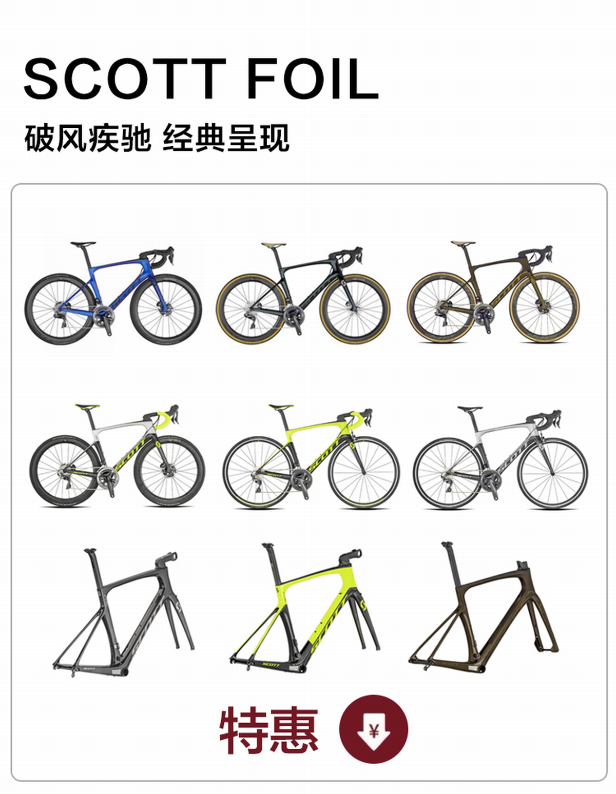 如果你想在这个火热的夏日体会速度与激情的快感,那么现在便是入手FOIL的最佳时机。因为即日起,这款性能出众经典气动车型迎来家族夏日冰点价,碟刹整车最低仅需24500元即可入手,圈刹整车更是低至19900元。急速,触手可及(具体配置表可至天猫:SYB运动旗舰店查询):
