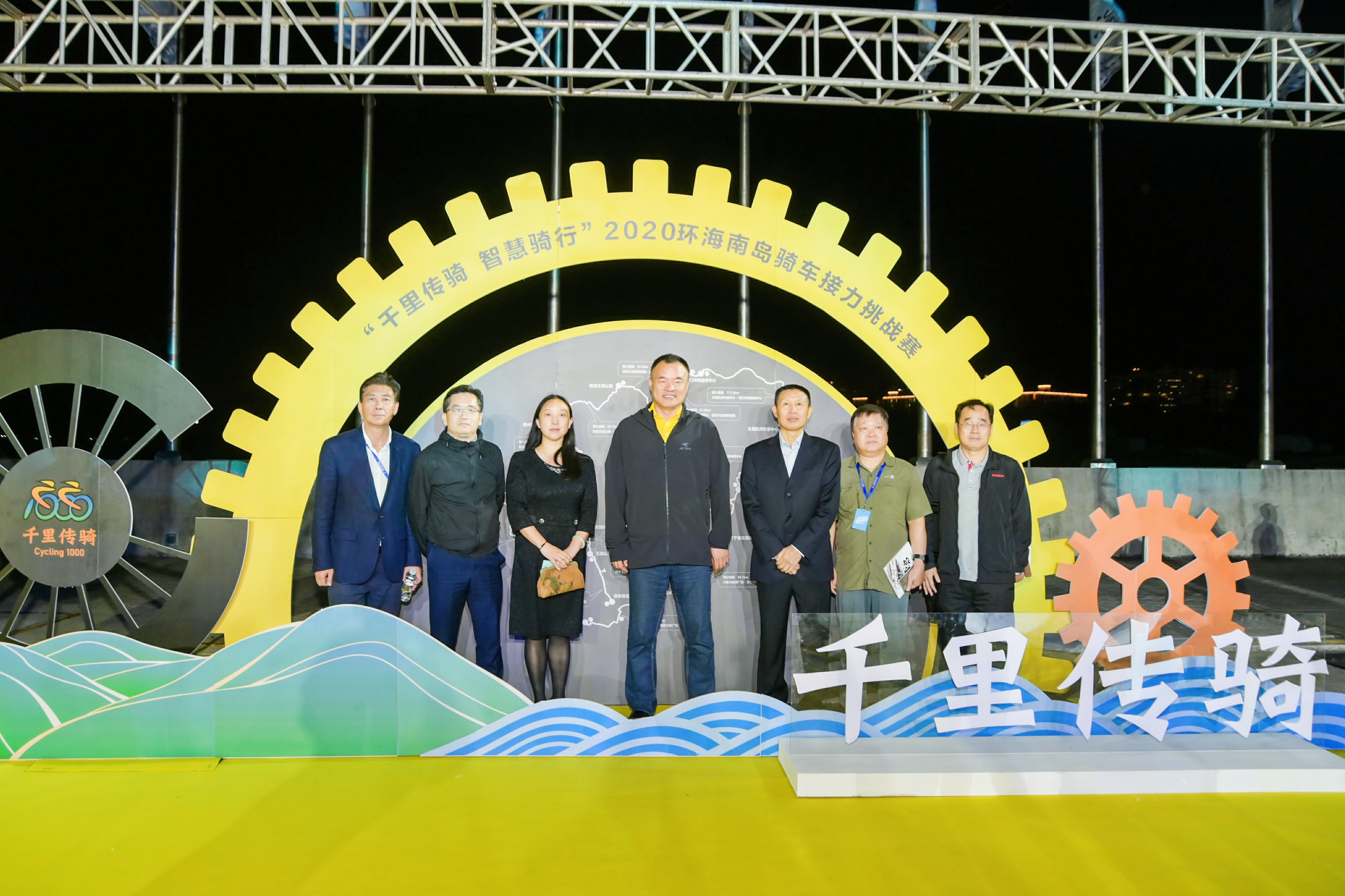 随后,激动人心的启动仪式正式亮相。领导和嘉宾将发光接力棒置入启动装置,象征“千里骑行”的数字“1000”随即发光亮起,舞台光焰四起,标志着“千里传骑 智慧骑行”2020环海南岛骑车接力挑战赛事正式开启。启动仪式过后,“千里传骑”赛事策划总监陈大福进行《千里传骑,我们的传骑》宣讲,出征大典也在全场高呼“千里传骑,我们的传骑”的热烈氛围中落下帷幕。