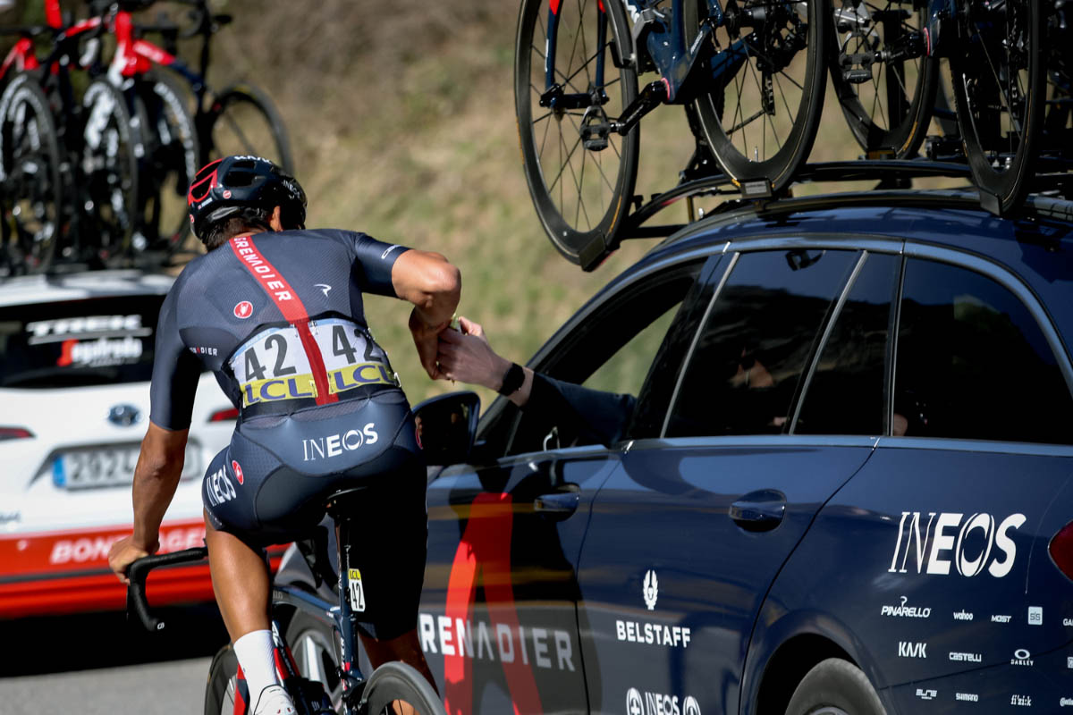 尽管更改路线后的第7赛段仅为119公里,但在这个赛段依然保持了高难度爬坡。车手们出发后便面对着三个2级爬坡点的挑战,最后来到1级坡决出胜负。在比赛开始后不久便有13名选手选择突围,他们的秒差被控制在2分30秒内,这样的秒差不会对后方总成绩车手们造成威胁。身着绿衫的萨姆·本内特在本赛段也参与了突围,随着不断的爬坡来临,这位爱尔兰车手在完成领骑任务后回到了集团之中。