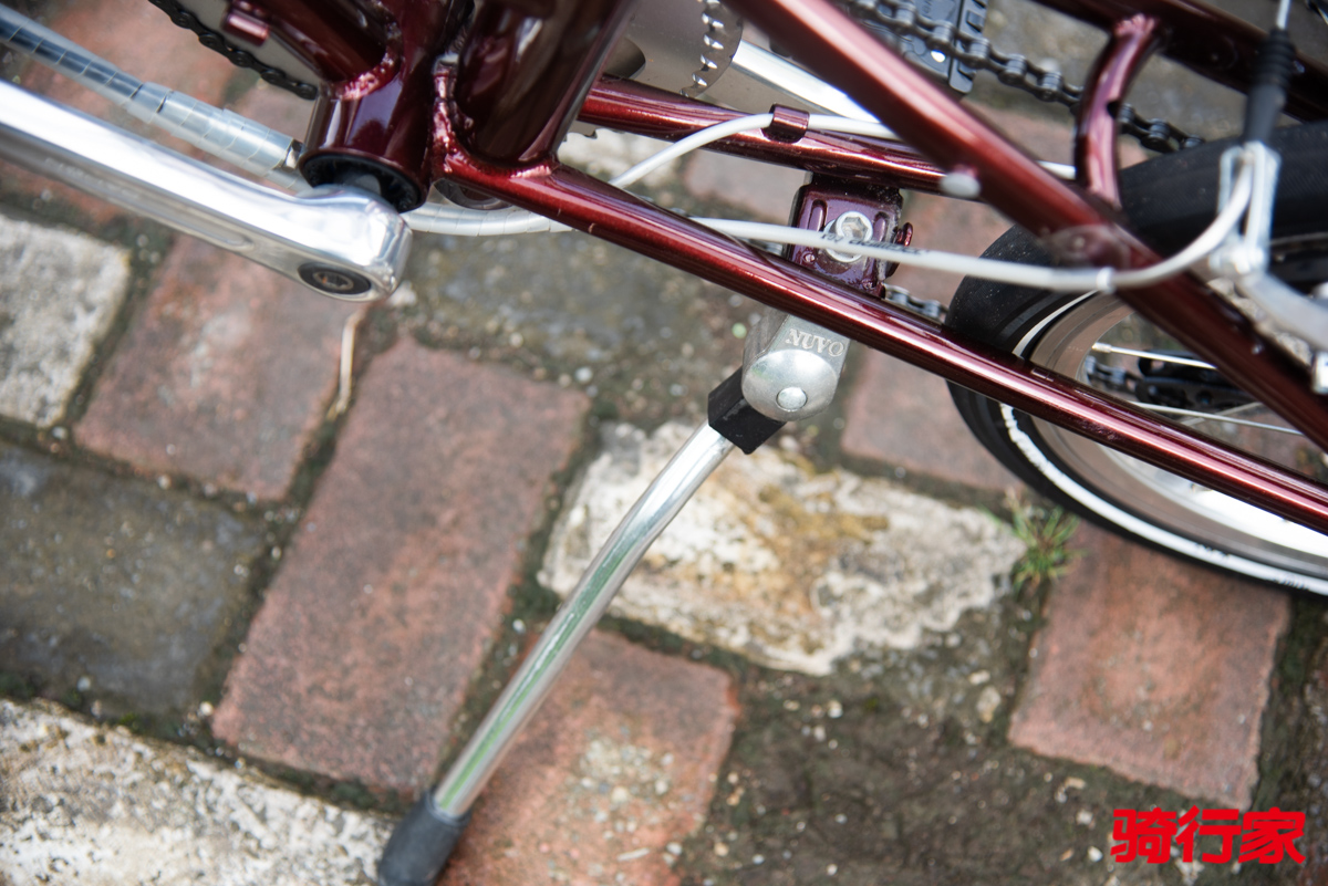 复古的英伦风格造型是它的加分项,除了车架前端的金属DAHON铭牌外,把套、坐垫都采用了皮革配色。