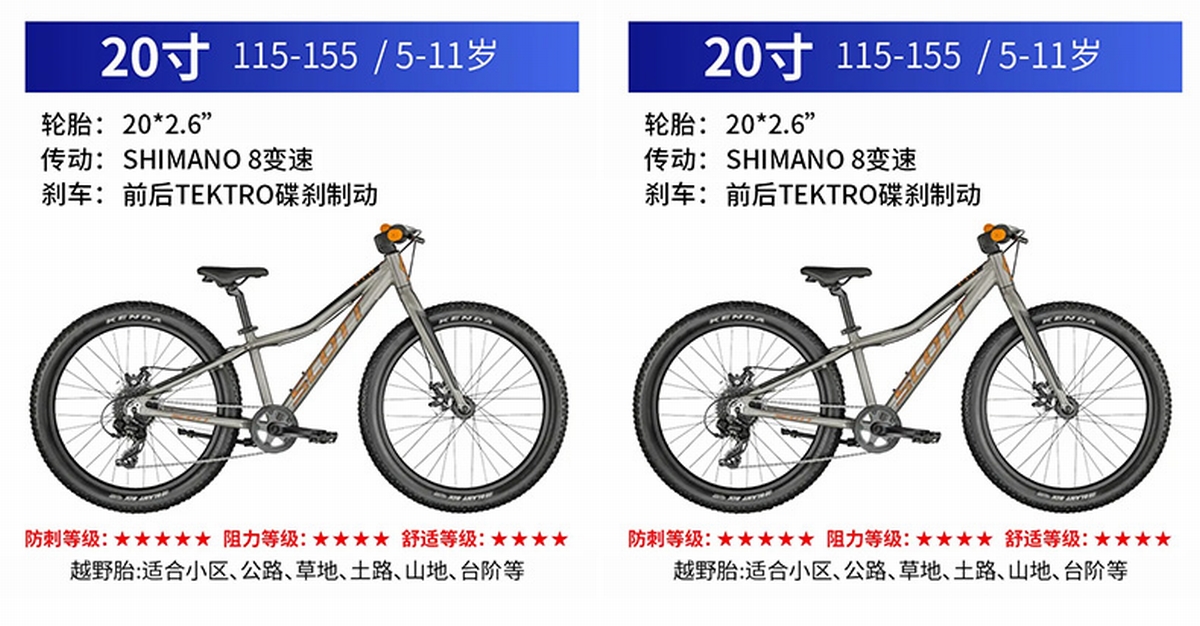 另外,以上两款均提供20寸版本,适合身高115-155cm,5-11岁孩子选择: