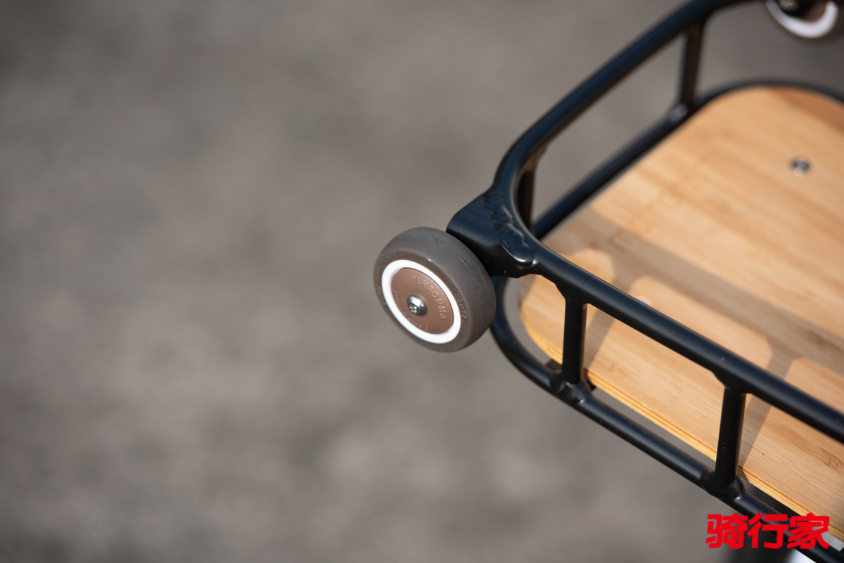 可负重10kg的菜篮还集成了易行轮,骑行时可用于存放物品,折叠运输过程中方便移动。