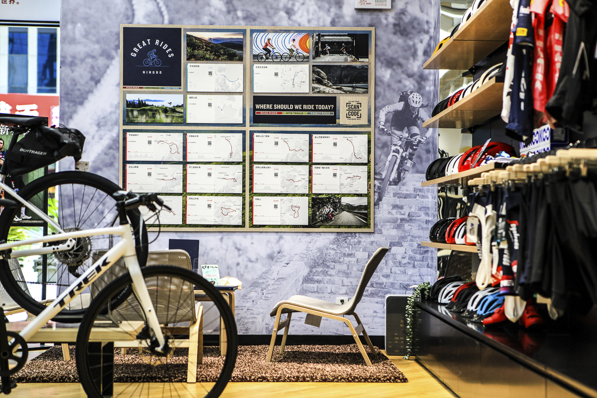TREK(崔克)自行车宁波骑行概念店坐落于宁波鄞州区CBD商业综合体的核心位置,店铺按照崔克自行车的新标准打造完成。在这里,自行车爱好者和运动粉丝不仅可以欣赏品鉴TREK及Bontrager全系最新和热销产品,更能体验崔克自行车的文化与独特的高科技设计。门店还提供Great Rides 当地骑行路线推荐,开业当天二十余位车友骑行了宁波本地的经典骑行路线东钱湖。