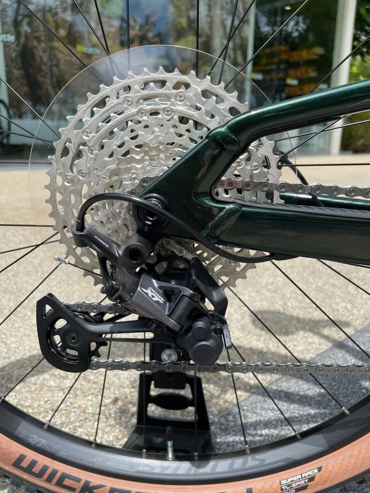 除了配色外,配置和橙黄色版本一致。前碳后铝车架,针对穿越和下坡优化的几何,和TWINLOC 2搭配的定制版的FOX前后避震,SHIMANO XT-SLX 12速传动,SCHWALBE WICKED WILL多用途外胎...内功同样不容小觑。