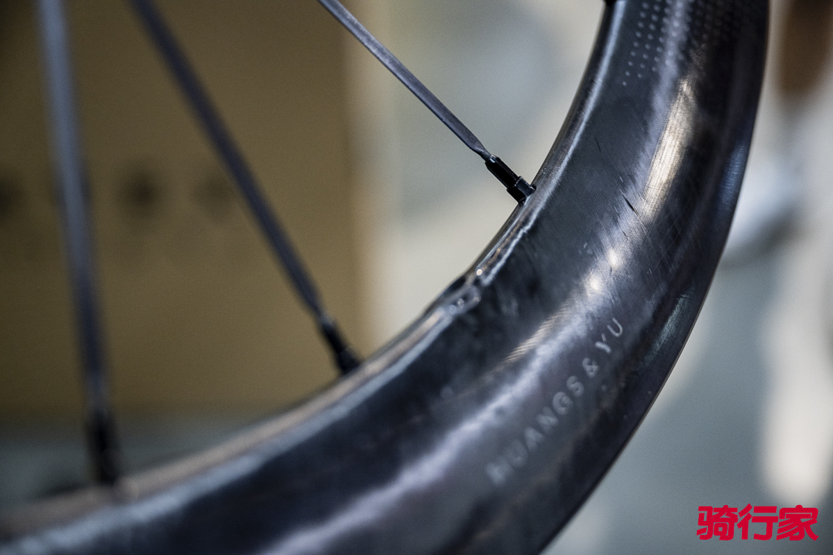 N6开口碟刹重量1350g,这个框高的轮组只有这么点重量,真的是很惊人。轮圈采用无孔胎槽设计,支持真空胎安装,因此无需再增加真空胎垫的重量。N6的碳纤维轮圈采用东丽T1100材料和缠绕工艺(CFM用连续的碳纤维丝通过编制制作成轮圈),外观采用免涂装工艺。