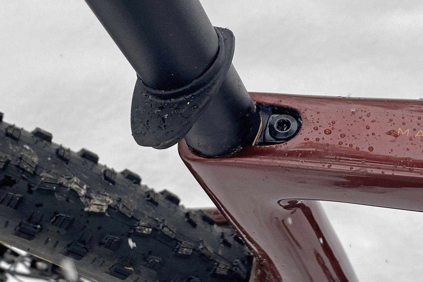 新款Extrema采用了类似去年Ultra上改进的更宽的管材形状,以提升气动性能,即使是搭配29er山地车轮胎也不会显得不和谐。现在,下管的上部宽度更大,达到63毫米;下管的下部现在达到73毫米宽,使水壶上方的气流更加顺畅。