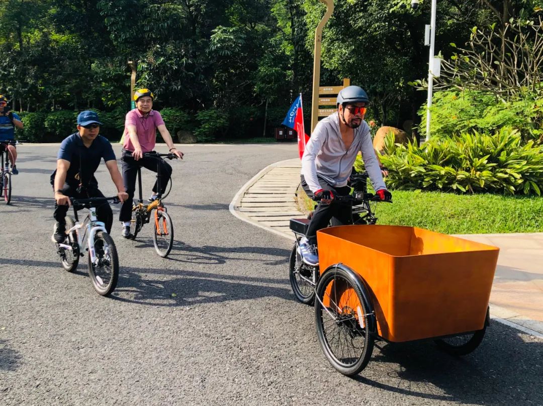 大行电助力三轮车(外销版),成为多次骑游活动的亮点。与国内常见的三轮车不同,此款车车斗放置于车前。