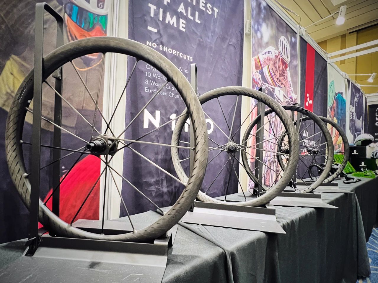 展位一侧摆上了FULCRUM轮组。作为CAMPAGNOLO的子品牌,两者旗下的产品有着很多共享技术。