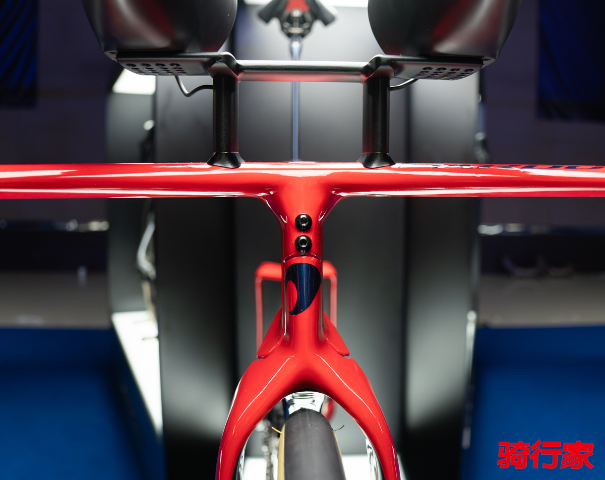 上一代的瑞豹戈梅拉是一台TT、铁三兼容的车型,在国内外市场赢得了无数铁人的信赖与喜爱,而新款的Pradus Gomera EVO是一台纯粹的、为速度而生的计时赛车。夸张但符合UCI规则的车架管型设计令人眼前一亮,在方方面面都体现了科技感与速度感,实在是太帅了!像信这台赛车一定是赛道上最亮眼的存在,极高的辨识度让人一眼就能被瑞豹的设计所吸引,掏出相机手机拍拍拍!