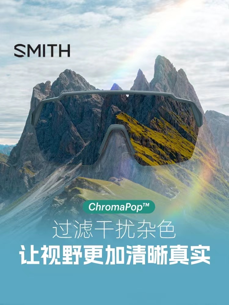 其镜片采用CHROMAPOP镜片技术,可过滤介于蓝绿色和红绿重叠的光,而提高自然彩色的清晰度。史密斯光学材料的镜片也更轻,佩戴更舒适,且可以保护眼睛免受外部冲击、碎片、颗粒物或其他潜在的眼部危害。