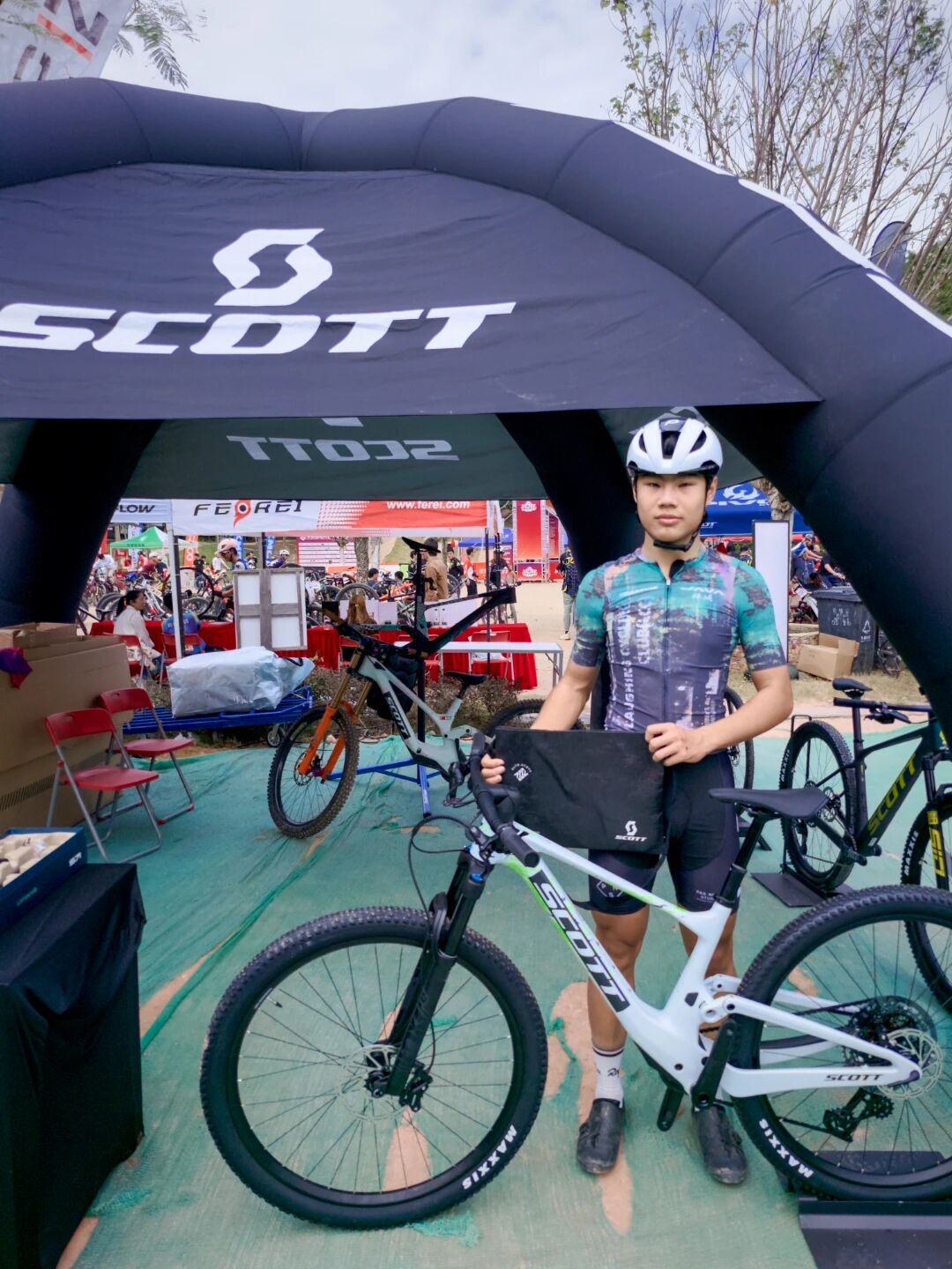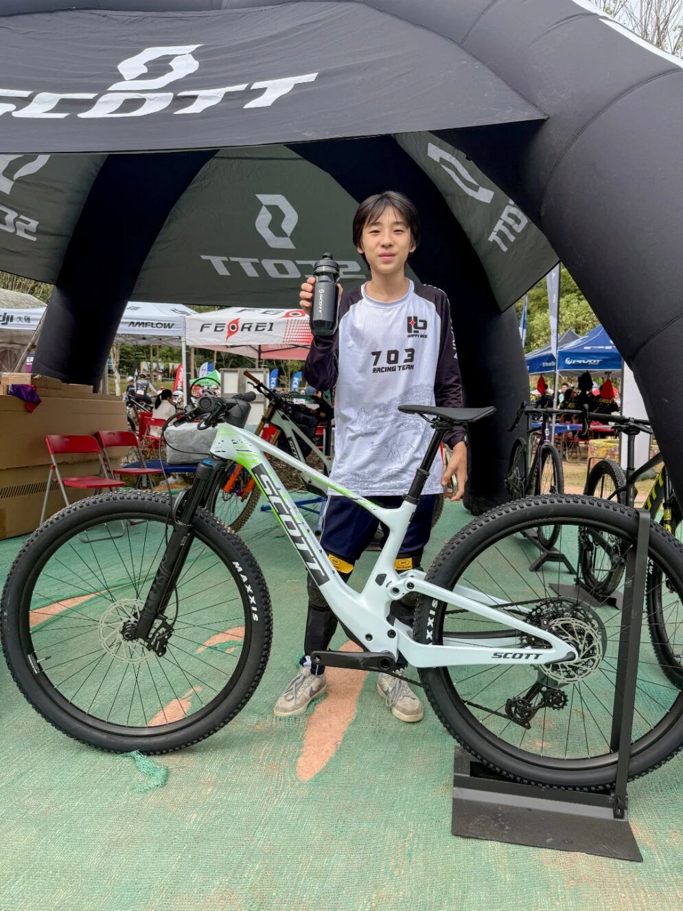 SCOTT赞助选手,14岁的Kimi猫仔陈俊熙也来到现场。本次他将使用SCOTT RANSOM参加DH速降赛U15少年组的赛事。