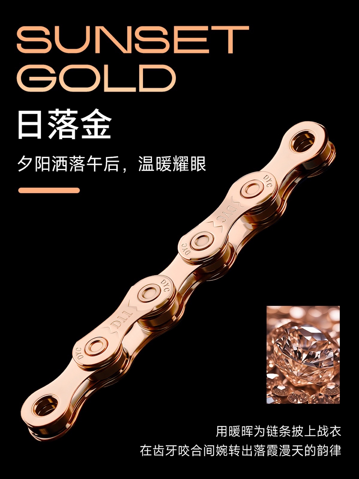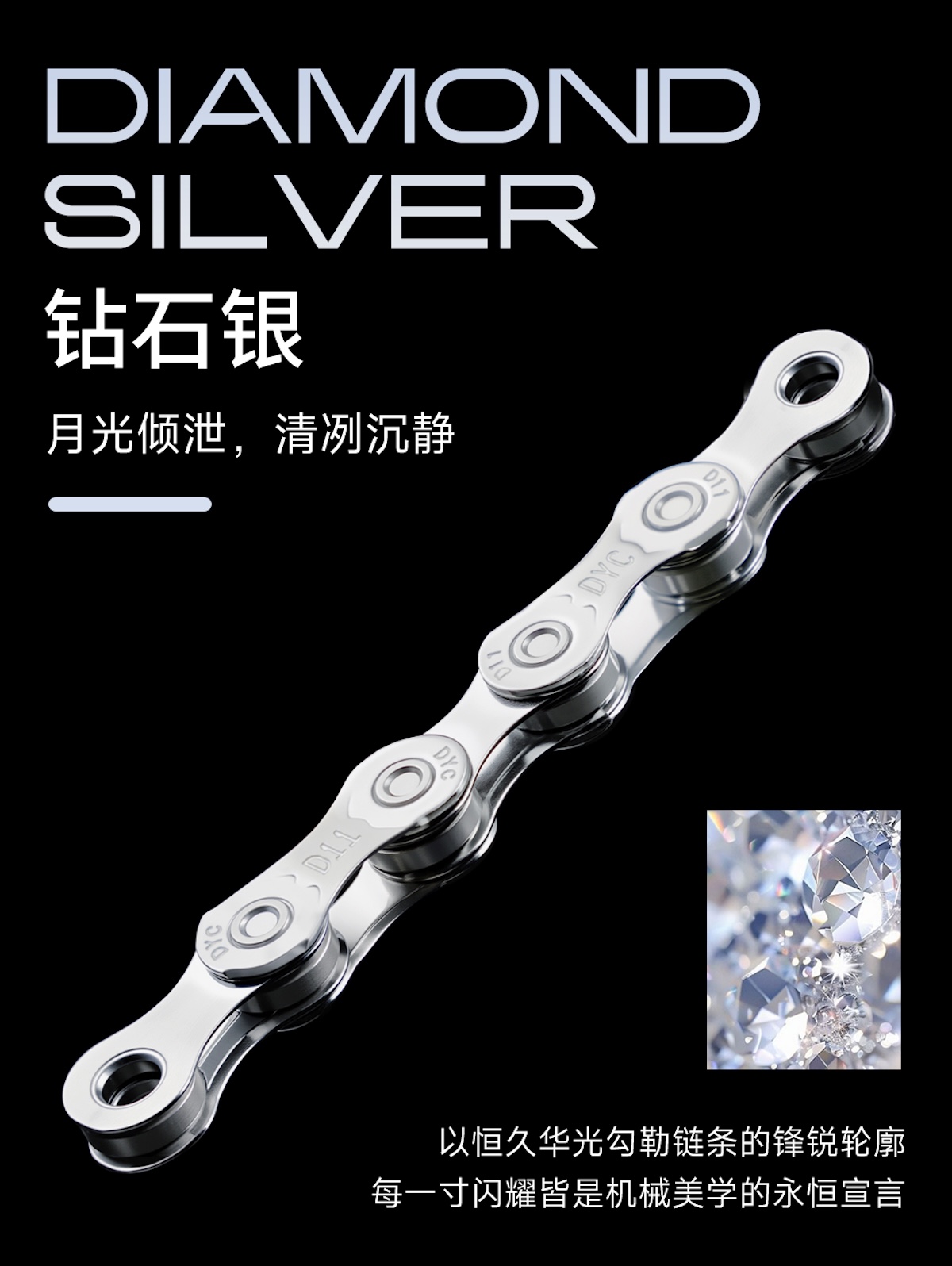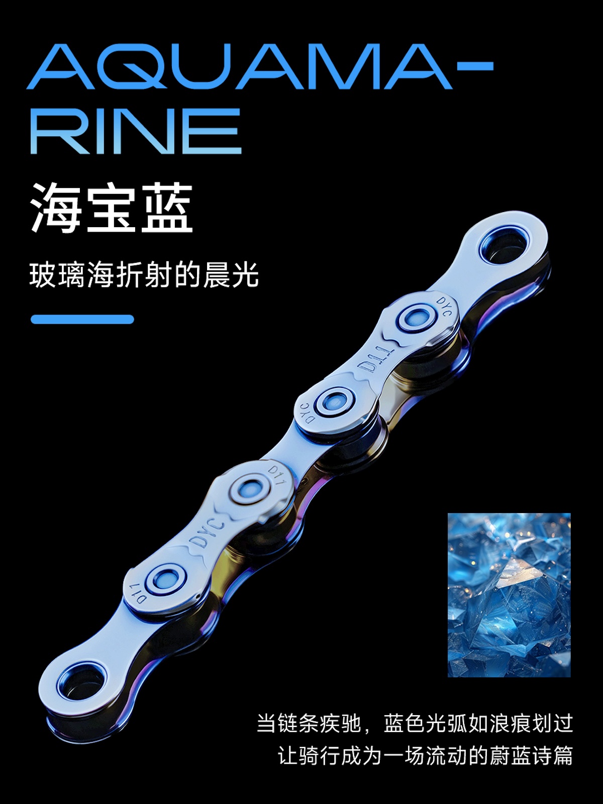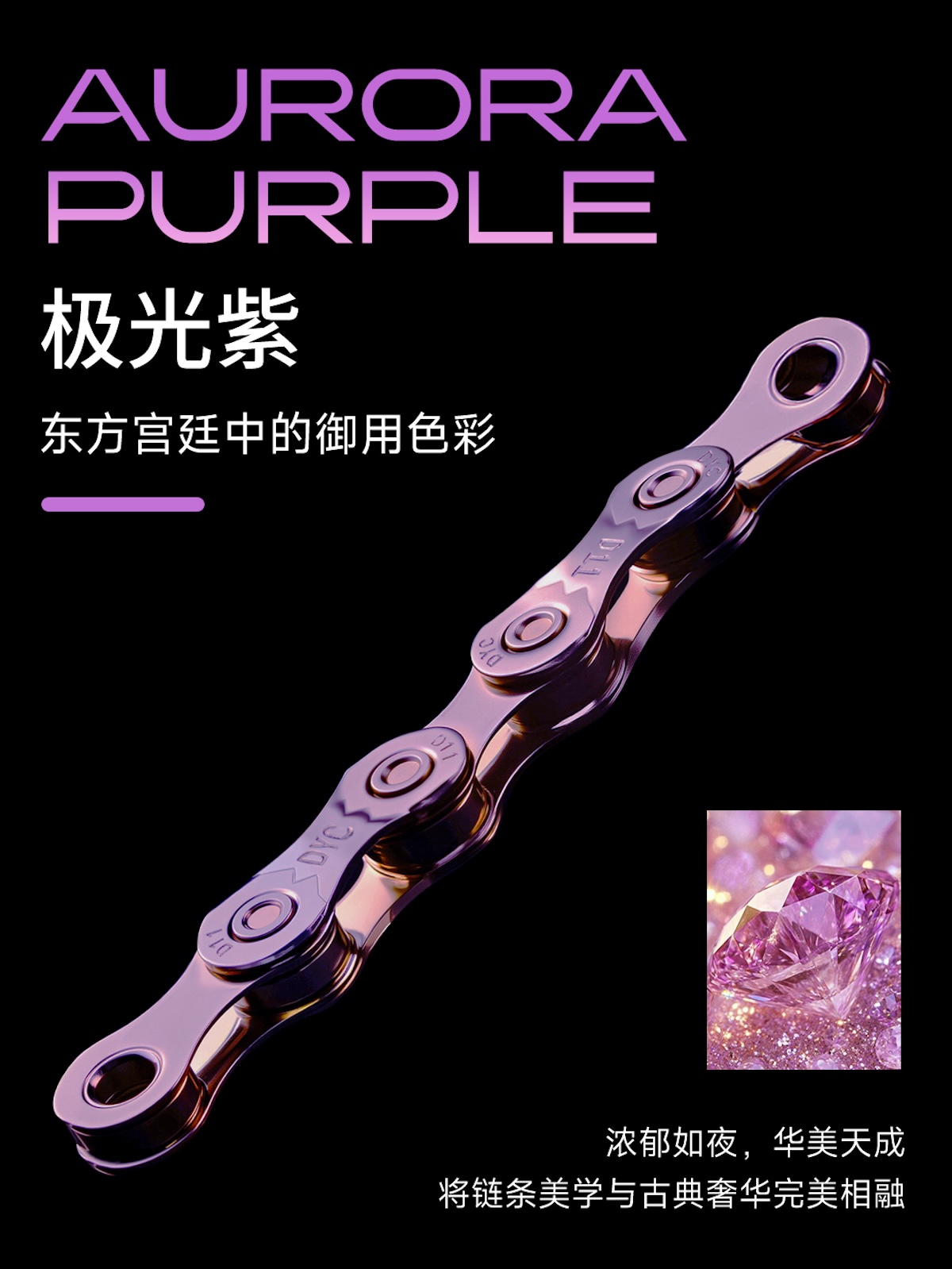 D-绮彩系列链条璀璨上市,撷取天然宝石色彩为创作灵感,融合DYC专利级燕尾桥型等设计,将天然宝石的夺目光彩凝练于金属链条,不同颜色的宝石承载不同寓意及祝福,目前上新10种颜色可供选择,让每一次骑行都闪耀非凡质感。