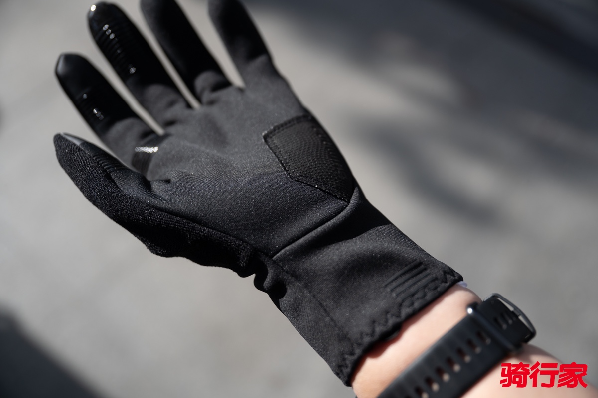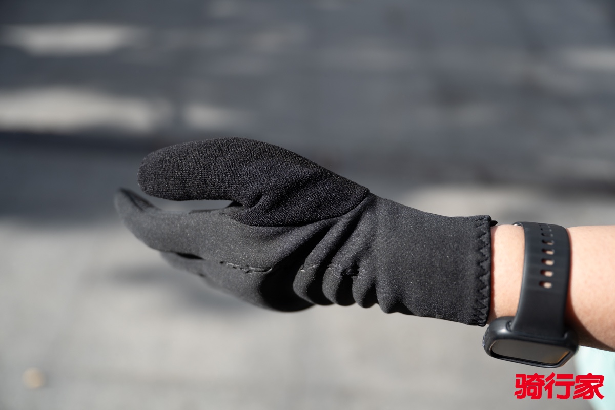 手掌和手指上的硅胶印花提供了十足的摩擦力,即使在湿冷条件下也能保持对车把的稳定控制。这款手套的食指和大拇指可以操作触屏,中指指尖是防滑硅胶,不可触屏,摩擦力优秀。虽然这款手套是为公路骑行而优化设计,但拿来骑山地车也没毛病。