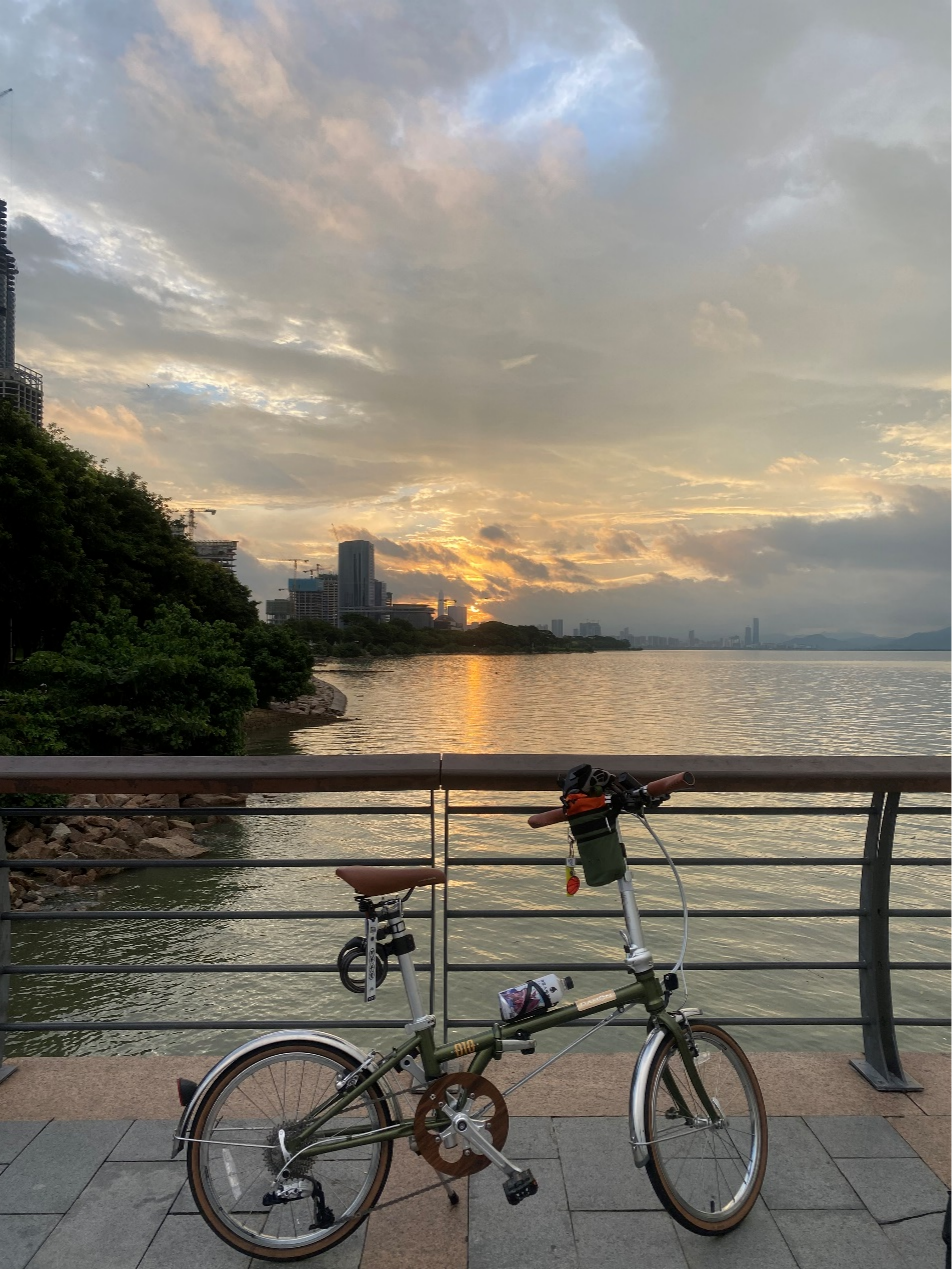 西起南山,东至福田,深圳湾海岸线全长大约 8.5 公里,选择性非常多。沿途有欢乐海岸、大沙河、海上世界等景点,向不同的方向骑行有不同的收获。一路上海景与绿树就在身侧,很适合骑行。不过周末节假日不能骑行(我是早上6点左右没有被拦路),建议大家可以选择傍晚骑行,追赶着海边的日落,别有一番浪漫。入口可以选择人才公园,公交和地铁都有相应的站点。