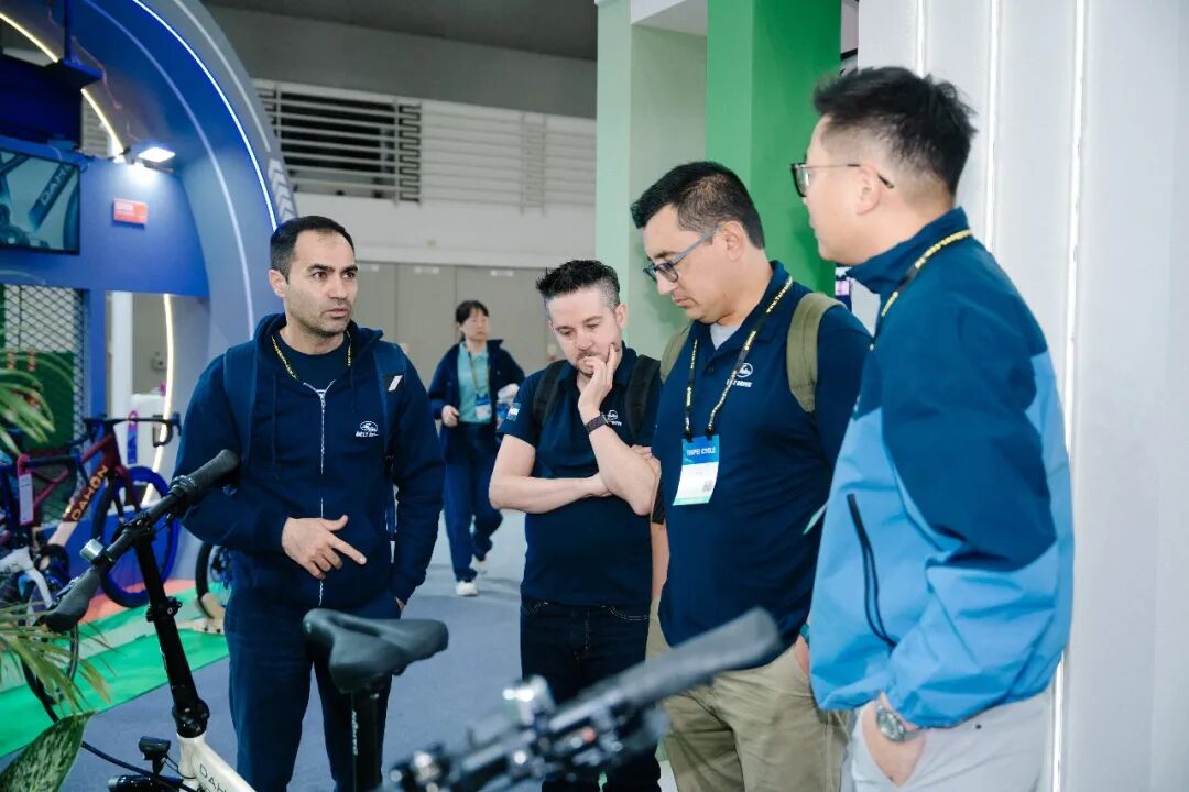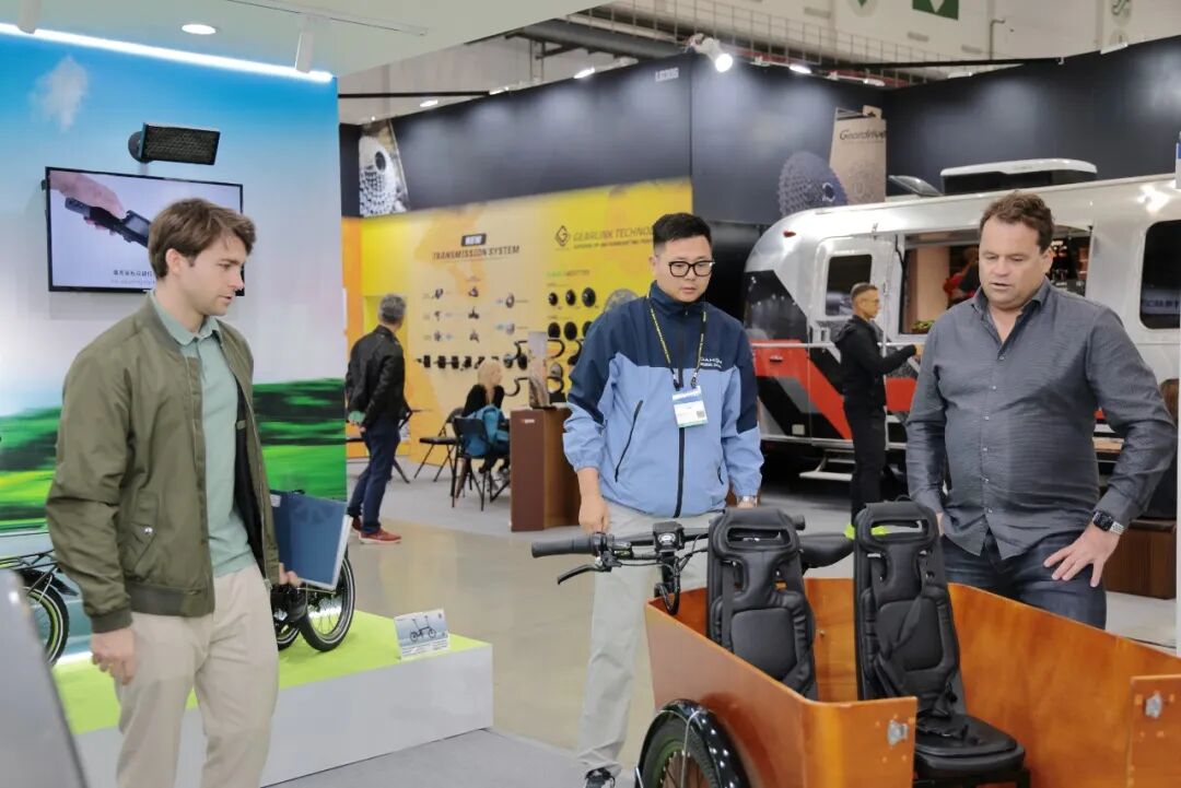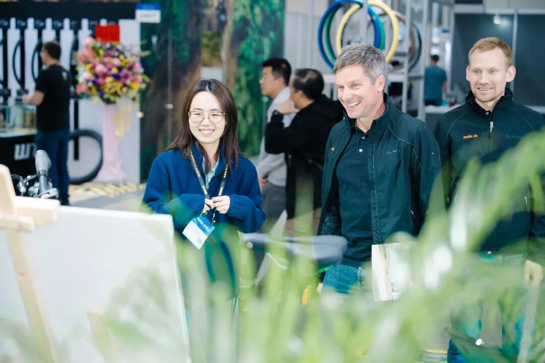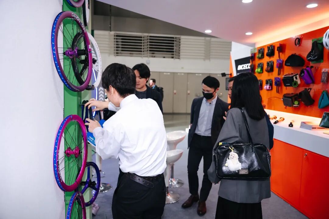 大行展位展示的第三轮、快拆脚踏等多品类专利件,引起国内外厂商关注,为产业技术交流提供平台。
