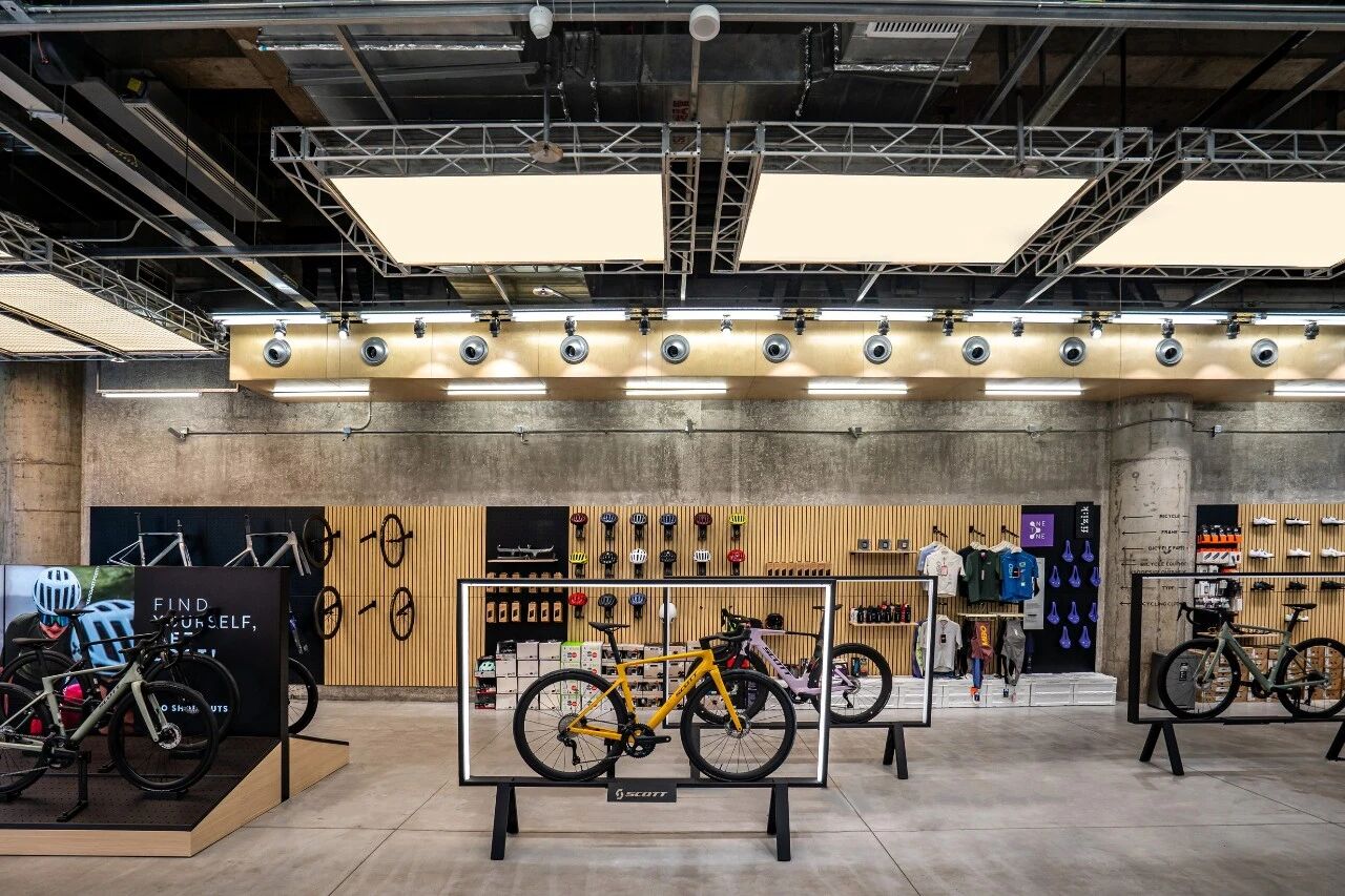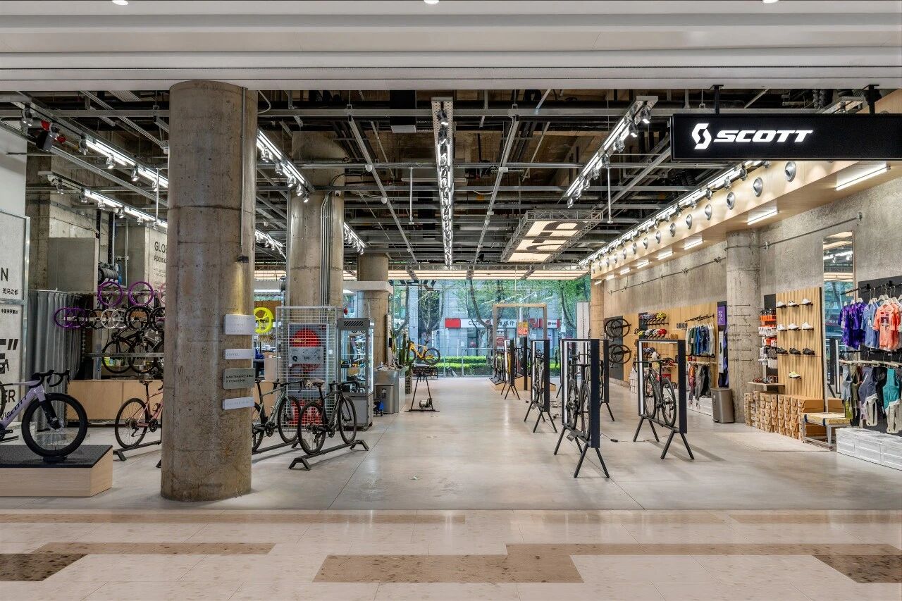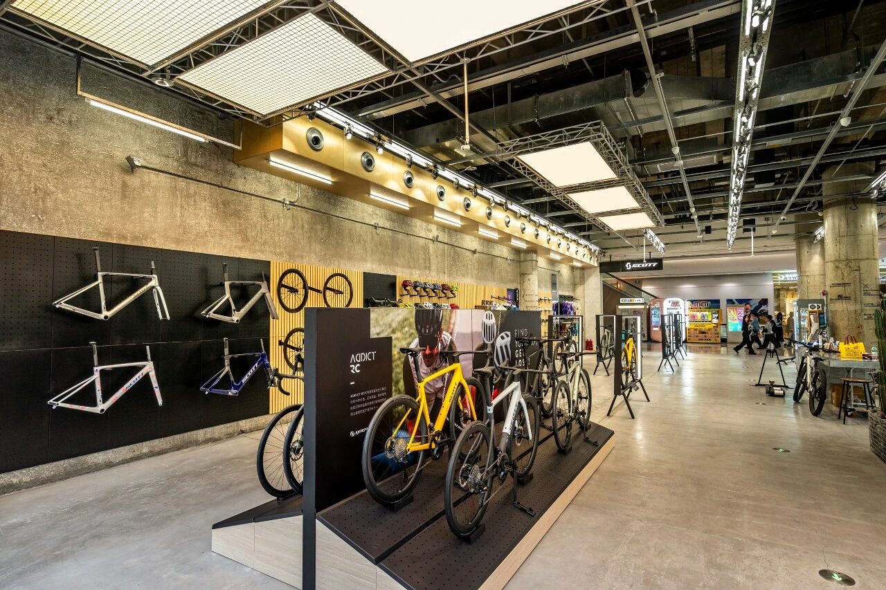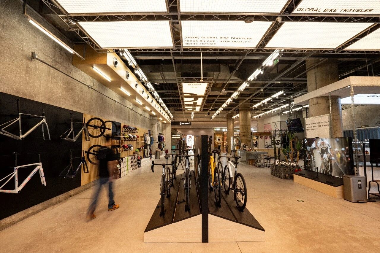 门店的设计与装修,是零售3.0最具象化的表达。SCOTT以客户全流程体验为核心规划原点,严格遵循SCOTT全球统一的视觉风格标准,经过数轮方案的反复打磨、论证与优化,最终呈现出现在的门店形态——将品牌文化传递、全品类产品展示、专业骑行维修与保养服务、骑友社群交流空间四大核心板块有机融合,打造沉浸式SCOTT骑行文化体验空间。