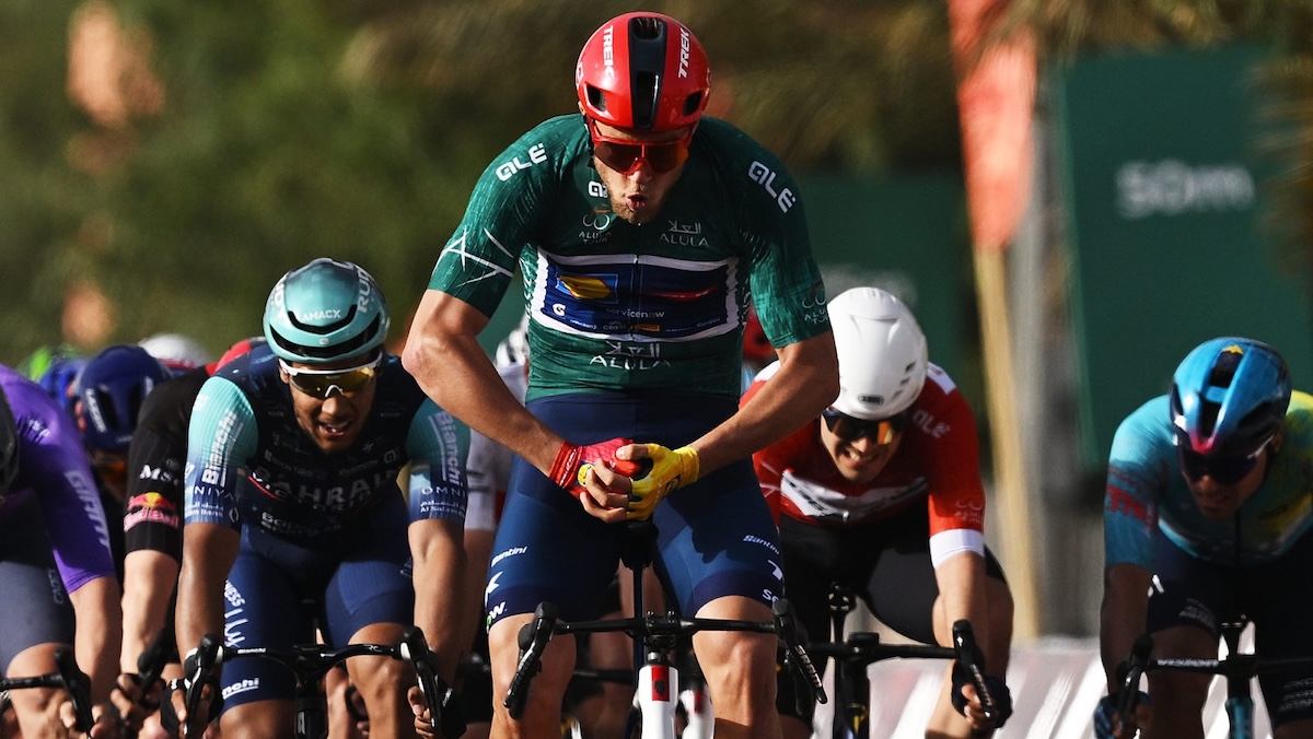 AlUla Tour领骑衫得主乔纳森·米兰在2赛段再度告捷,完成两连胜。Lidl-Trek车队以教科书般的带冲,将这位意大利冲刺手在终点前的最后几个弯道精准送到理想位置。
