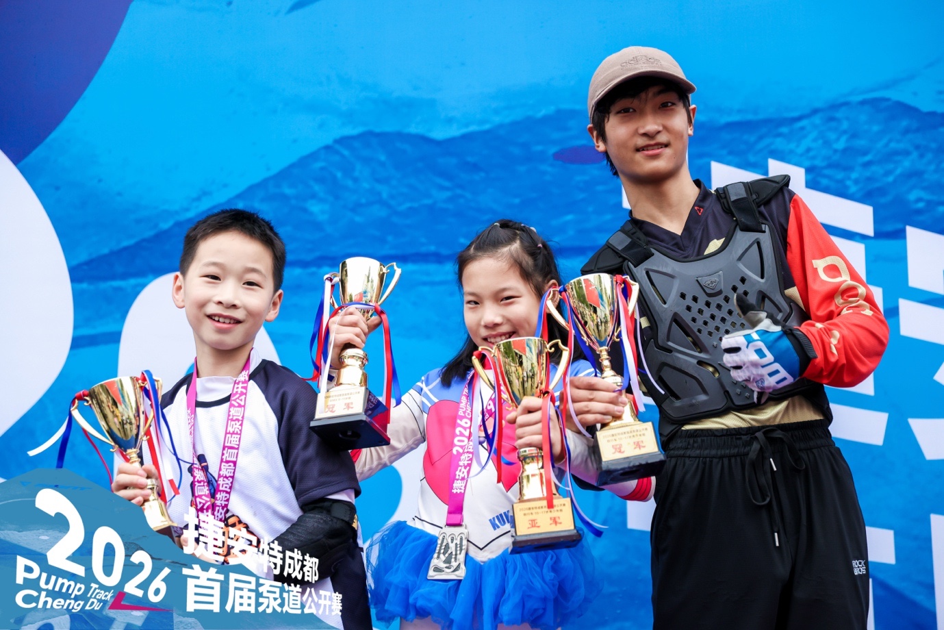 经过全天多轮激烈比拼,各组别冠亚季军相继诞生。选手们在计时赛中不断刷新最快圈速,青少年组与少儿组同样亮点频出,多名本土小将展现出扎实的泵道功底,赢得现场观众阵阵喝彩。