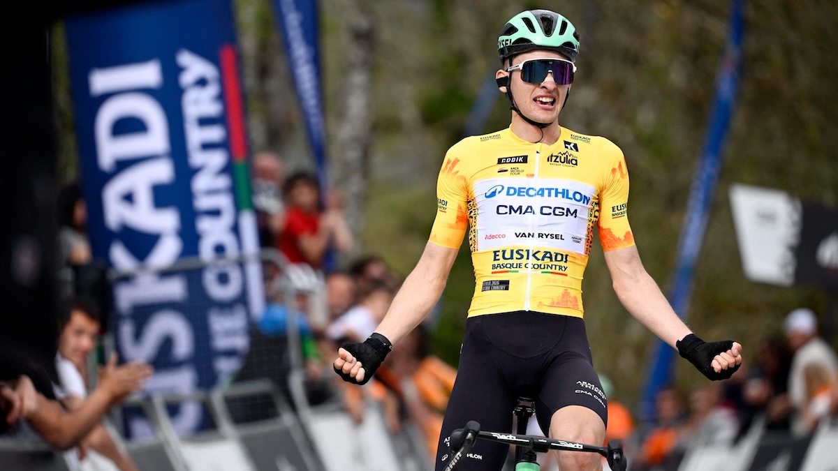 此前他已在周一的揭幕个人计时赛中以惊人的优势夺冠。仅仅24小时后,在阿拉拉尔山一次令人瞠目结舌的高速下坡之后,这位19岁的Decathlon CMA CGM车队车手在最后一段短上坡冲刺中强势冲线,以1分25秒优势领先马蒂亚斯·斯凯尔莫塞(Mattias Skjelmose,Lidl-Trek)与普里莫日·罗格利奇(Primož Roglič,Red Bull-Bora-Hansgrohe)。