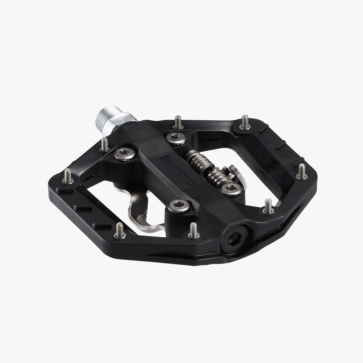 PD-EH510采用单面SPD锁踏设计,另一面为稳固的平面踏板,使车手能根据地形、穿着的骑行鞋或骑行偏好自由切换踩踏方式。111毫米 x 96毫米的宽平台可带来稳定自信的踩踏体验,每侧八颗销钉的设计在未上锁状态下也能保持出色的抓持力和操控性。