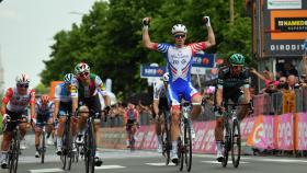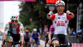 5月22日,2019环意大利自行车赛第十一赛段,经过206公里的角逐,比利时乐透车队的凯莱布 伊万(Caleb Evan)力压德马尔(Arnaud Demare)和阿克曼(PascalAckermann),率先冲过设立在诺维利古雷(Novi Ligure)的终点。