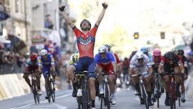 经过本赛段漫长的争夺,最终来自阿斯塔纳车队的米纳利(Riccardo Minali)在大集团冲刺获胜,他也从瓜尔蒂尼手中接过了黄衫和绿衫。