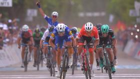 1月18日环澳赛第3赛段,快步车队(Quick-Step Floors)车手埃利亚·维维亚尼(Elia Viviani)在最后的冲刺大战中一举超越绿刃车队(Mitch
