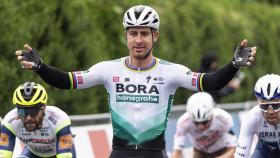 4月28日,2021年环罗曼蒂迎来了正赛的首个赛段,来自博拉-汉斯格雅车队的彼得·萨甘(PeterSagan)在主集团冲刺中力压来自巴林-胜利队的索