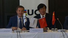 中国自行车运动协会和国际自行车联盟(UCI)合作备忘录签署仪式于9月27日在奥地利因斯布鲁克举行,中自协主席沈金康和国际自盟主席大卫·拉帕迪安(David Lappartient)分别代表双方签署合作备忘录。