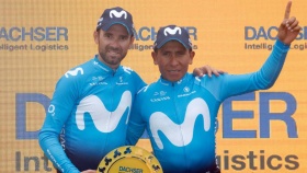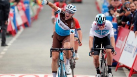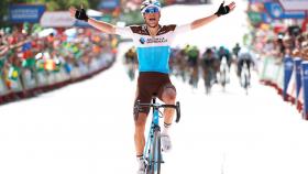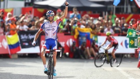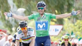 9月1日环西第8赛段,移动之星车手亚历杭德罗·巴尔韦德(Alejandro Valverde)在上坡冲刺中战胜博拉-汉斯格雅车手彼得·萨甘(Peter Saga