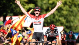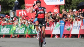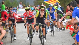 9月8日,环西第14赛段普拉埃雷斯山结束了一天的赛程,来自绿刃车队的西蒙·耶茨(Simon Yates)在最后爬坡的缠斗中单飞成功,在收获单站冠军的同时再次披上了红色领骑衫。